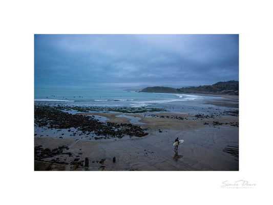 Surfer on a San Francisco Beach